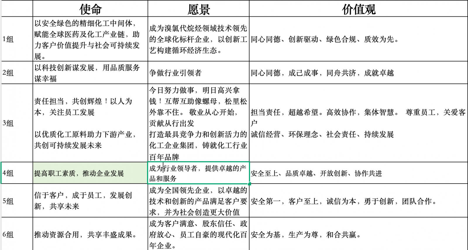 圖示:各小組集思廣益的企業(yè)文化標(biāo)語(yǔ)